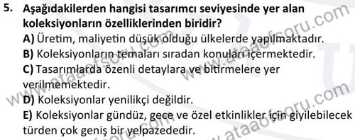 Koleksiyon Hazırlama ve Ürün Geliştirme 1 Dersi Final Deneme Sınavı (22 Aralık)