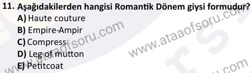 Kostüm Tarihi Dersi 2025-2026 Güz Dönemi Final Sınavı Çıkmış Sınav Soruları ve Çözümleri
