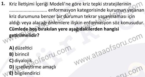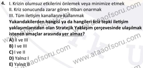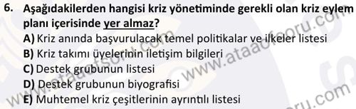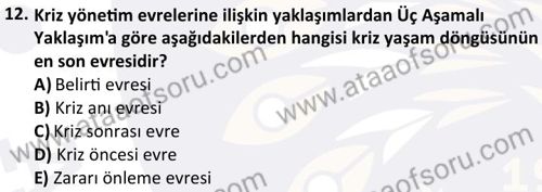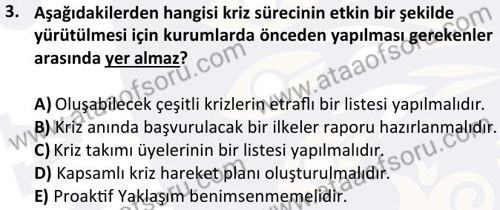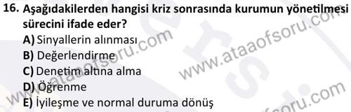Kriz Yönetimi Dersi 2024-2025 Bahar Dönemi Final Sınavı Çıkmış Sınav Soruları ve Çözümleri