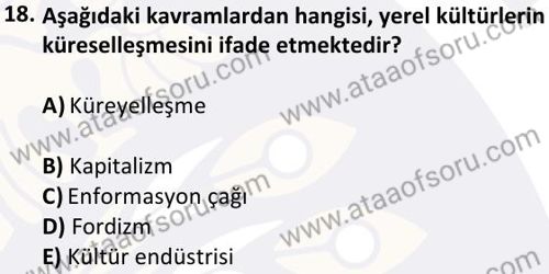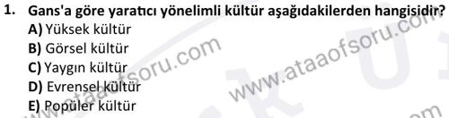 Kültür Sosyolojisi Dersi 2024-2025 Güz Dönemi Bütünleme Sınavı Çıkmış Sınav Soruları ve Çözümleri