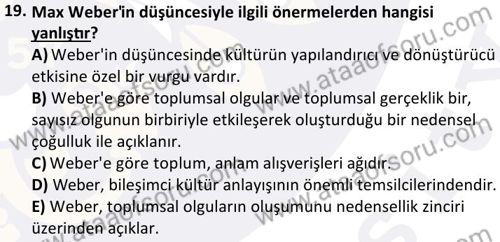 Kültür Sosyolojisi Dersi 2025-2026 Güz Dönemi Ara Sınavı Çıkmış Sınav Soruları ve Çözümleri