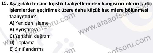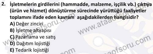 Lojistiğe Giriş Dersi 2024-2025 Güz Dönemi Bütünleme Sınavı Çıkmış Sınav Soruları ve Çözümleri