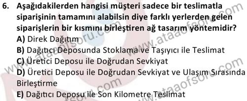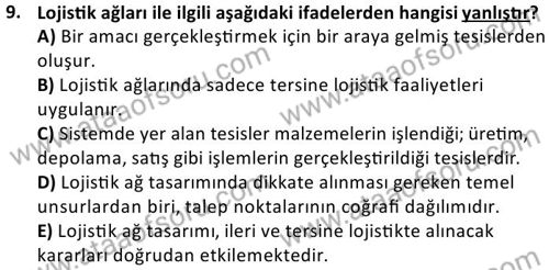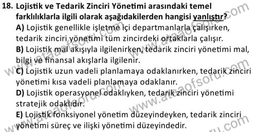 Lojistiğe Giriş Dersi 2025-2026 Güz Dönemi Ara Sınavı Çıkmış Sınav Soruları ve Çözümleri