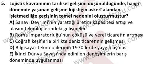 Lojistiğe Giriş Dersi 2025-2026 Güz Dönemi Ara Sınavı Çıkmış Sınav Soruları ve Özetleri. Geçmiş dönemlere ait sınav sorularını çözerek sınavlarda gelebilecek soru kalıplarının ve benzer soruları yakalamanız daha kolay olacaktır. Çıkmış sınav soruları ile beraber konu anlatımı, ders özetleri ve online deneme sınavları ile sınavlara hazrılanabilirsin.