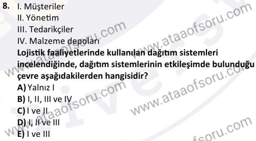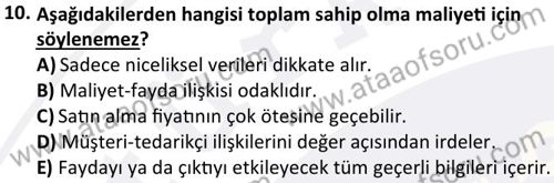 Lojistik Maliyet Analizi Dersi 2024-2025 Bahar Dönemi Bütünleme Sınavı Çıkmış Sınav Soruları ve Çözümleri