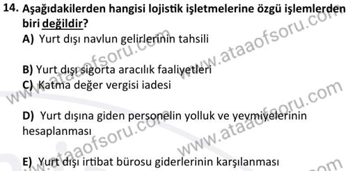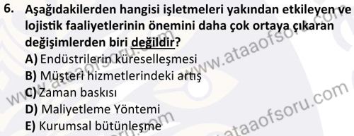 Lojistik Maliyet Analizi Dersi 2024-2025 Bahar Dönemi Bütünleme Sınavı Çıkmış Sınav Soruları ve Özetleri. Geçmiş dönemlere ait sınav sorularını çözerek sınavlarda gelebilecek soru kalıplarının ve benzer soruları yakalamanız daha kolay olacaktır. Çıkmış sınav soruları ile beraber konu anlatımı, ders özetleri ve online deneme sınavları ile sınavlara hazrılanabilirsin.
