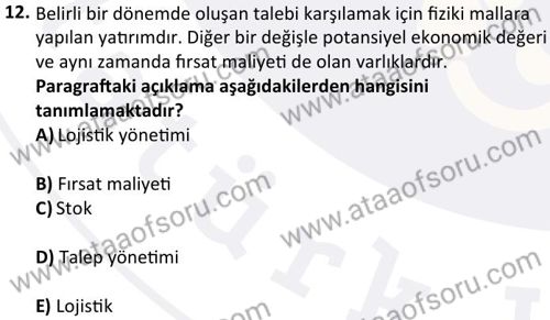 Lojistik Maliyet Analizi Dersi 2024-2025 Bahar Dönemi Final Sınavı Çıkmış Sınav Soruları ve Çözümleri