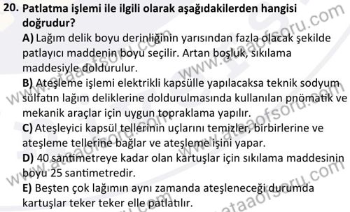 Maden ve Yapı İşlerinde İSG Dersi 2024-2025 Bahar Dönemi Bütünleme Sınavı Çıkmış Sınav Soruları ve Çözümleri