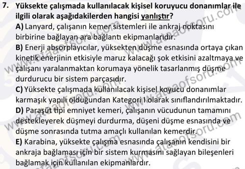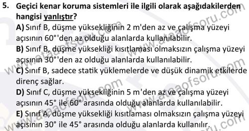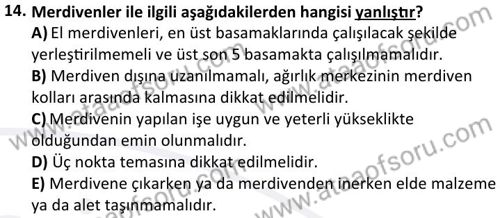 Maden ve Yapı İşlerinde İSG Dersi 2024-2025 Bahar Dönemi Final Sınavı Çıkmış Sınav Soruları ve Çözümleri