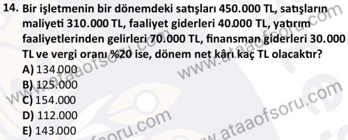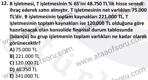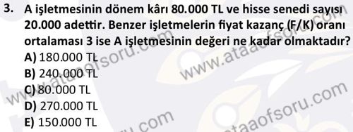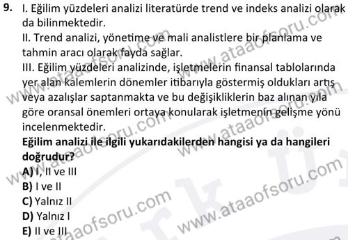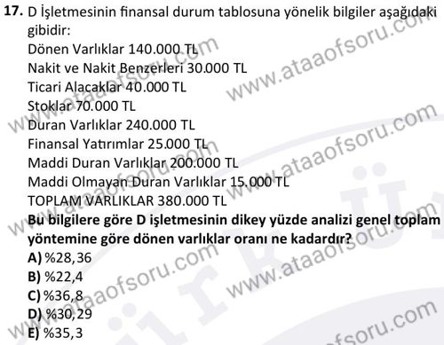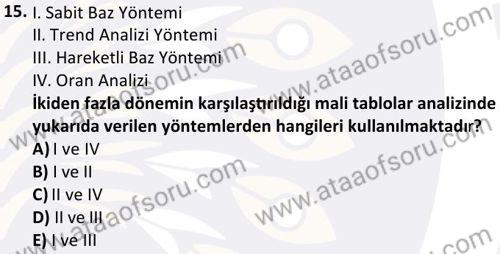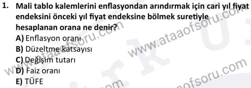 Mali Tablolar Analizi Dersi 2024-2025 Güz Dönemi Bütünleme Sınavı Çıkmış Sınav Soruları ve Çözümleri