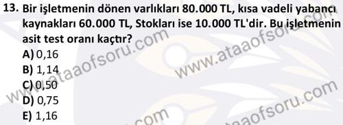 Mali Tablolar Analizi Dersi 2025-2026 Güz Dönemi Final Sınavı Çıkmış Sınav Soruları ve Özetleri. Geçmiş dönemlere ait sınav sorularını çözerek sınavlarda gelebilecek soru kalıplarının ve benzer soruları yakalamanız daha kolay olacaktır. Çıkmış sınav soruları ile beraber konu anlatımı, ders özetleri ve online deneme sınavları ile sınavlara hazrılanabilirsin.