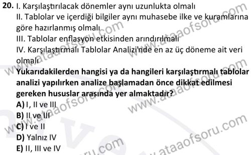 Mali Tablolar Analizi Dersi 2025-2026 Güz Dönemi Final Sınavı Çıkmış Sınav Soruları ve Çözümleri