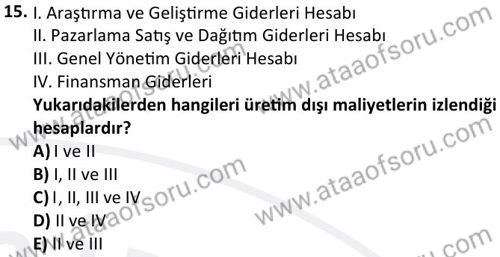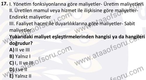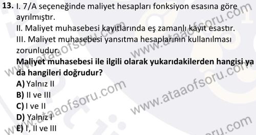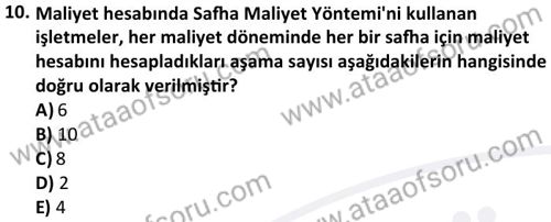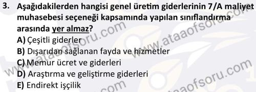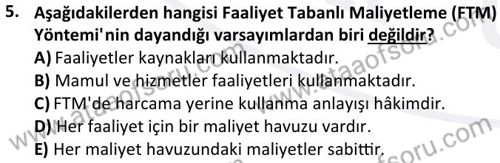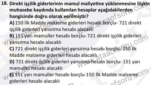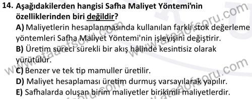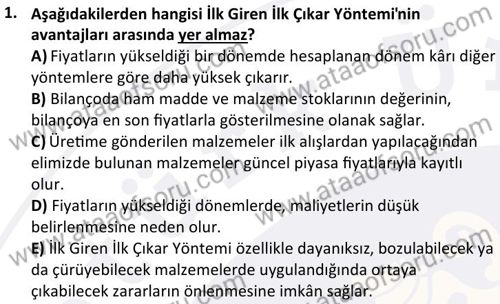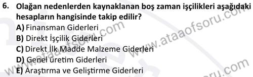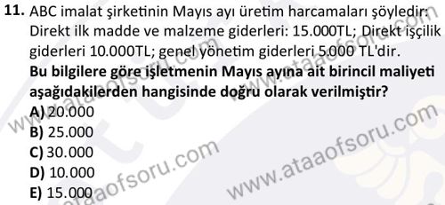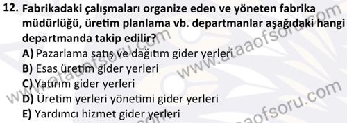 Maliyet Muhasebesi 1 Dersi 2024-2025 Güz Dönemi Bütünleme Sınavı Çıkmış Sınav Soruları ve Çözümleri