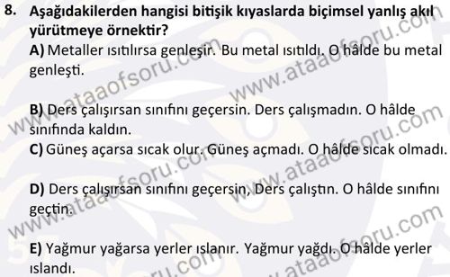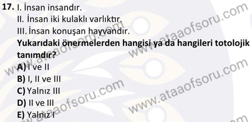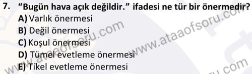 Mantık Dersi 2024-2025 Bahar Dönemi Bütünleme Sınavı Çıkmış Sınav Soruları ve Çözümleri