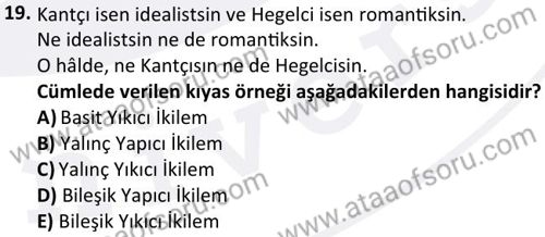 Mantık Dersi 2024-2025 Bahar Dönemi Bütünleme Sınavı Çıkmış Sınav Soruları ve Özetleri. Geçmiş dönemlere ait sınav sorularını çözerek sınavlarda gelebilecek soru kalıplarının ve benzer soruları yakalamanız daha kolay olacaktır. Çıkmış sınav soruları ile beraber konu anlatımı, ders özetleri ve online deneme sınavları ile sınavlara hazrılanabilirsin.