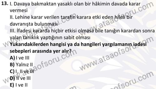 Medeni Usul Hukuku Dersi 2025-2026 Güz Dönemi Final Sınavı Çıkmış Sınav Soruları ve Özetleri. Geçmiş dönemlere ait sınav sorularını çözerek sınavlarda gelebilecek soru kalıplarının ve benzer soruları yakalamanız daha kolay olacaktır. Çıkmış sınav soruları ile beraber konu anlatımı, ders özetleri ve online deneme sınavları ile sınavlara hazrılanabilirsin.