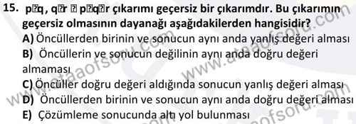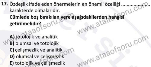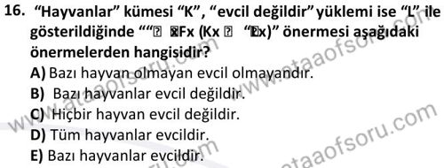 Modern Mantık Dersi 2024-2025 Bahar Dönemi Bütünleme Sınavı Çıkmış Sınav Soruları ve Özetleri. Geçmiş dönemlere ait sınav sorularını çözerek sınavlarda gelebilecek soru kalıplarının ve benzer soruları yakalamanız daha kolay olacaktır. Çıkmış sınav soruları ile beraber konu anlatımı, ders özetleri ve online deneme sınavları ile sınavlara hazrılanabilirsin.