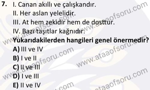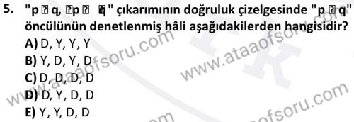 Modern Mantık Dersi 2024-2025 Bahar Dönemi Bütünleme Sınavı Çıkmış Sınav Soruları ve Çözümleri