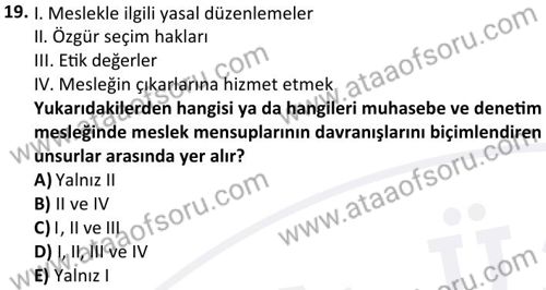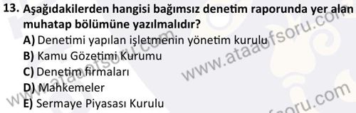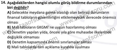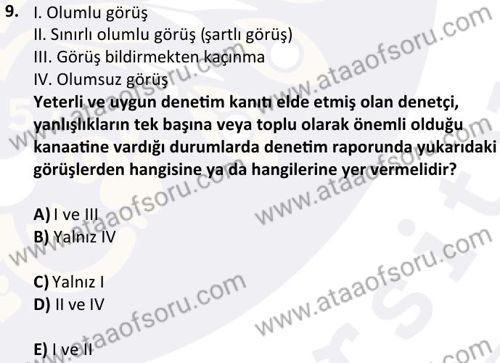 Muhasebe Denetimi Dersi 2024-2025 Bahar Dönemi Final Sınavı Çıkmış Sınav Soruları ve Çözümleri