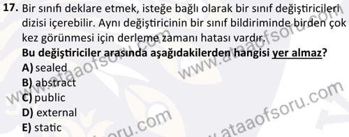 Nesne Tabanlı Programlama 1 Dersi 2025-2026 Güz Dönemi Ara Sınavı Çıkmış Sınav Soruları ve Özetleri. Geçmiş dönemlere ait sınav sorularını çözerek sınavlarda gelebilecek soru kalıplarının ve benzer soruları yakalamanız daha kolay olacaktır. Çıkmış sınav soruları ile beraber konu anlatımı, ders özetleri ve online deneme sınavları ile sınavlara hazrılanabilirsin.
