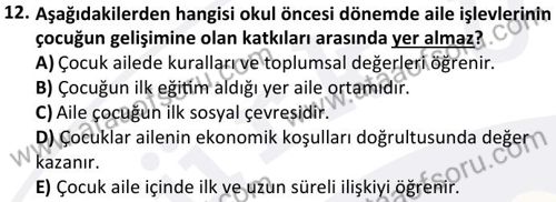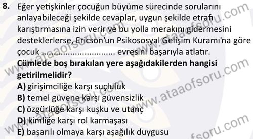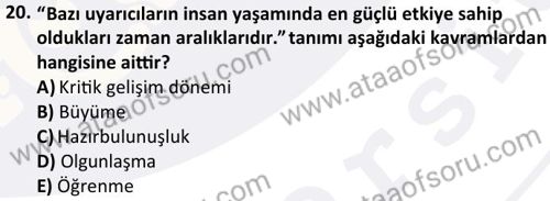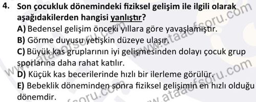 Okul Öncesi Dönemde Gelişim Dersi 2024-2025 Güz Dönemi Bütünleme Sınavı Çıkmış Sınav Soruları ve Çözümleri