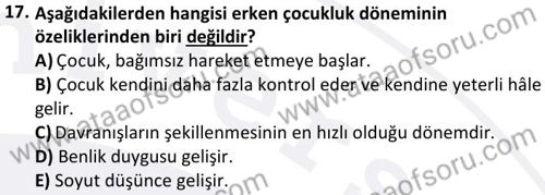 Okul Öncesi Dönemde Gelişim Dersi 2025-2026 Güz Dönemi Ara Sınavı Çıkmış Sınav Soruları ve Çözümleri