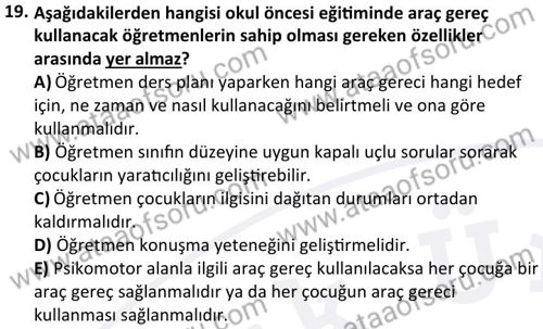 Okul Öncesi Eğitimde Araç Gereç Geliştirme Dersi 2024-2025 Güz Dönemi Bütünleme Sınavı Çıkmış Sınav Soruları ve Çözümleri