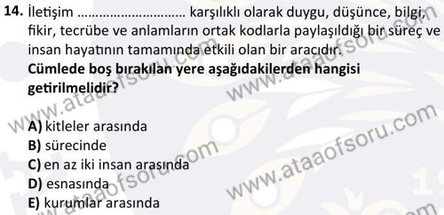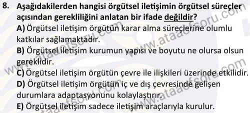Örgütsel İletişim Dersi 2024-2025 Bahar Dönemi Bütünleme Sınavı Çıkmış Sınav Soruları ve Çözümleri