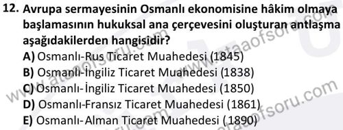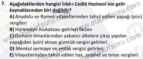 Osmanlı Sosyal İktisat Tarihi Dersi 2024-2025 Güz Dönemi Bütünleme Sınavı Çıkmış Sınav Soruları ve Çözümleri