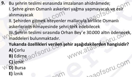 Osmanlı Tarihi 1 Dersi 2025-2026 Güz Dönemi Ara Sınavı Çıkmış Sınav Soruları ve Çözümleri