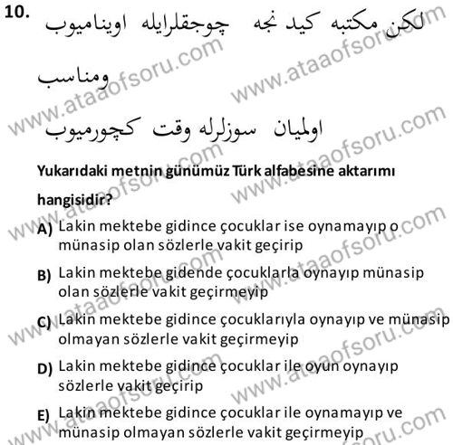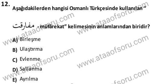 Osmanlı Türkçesi Metinleri 1 Dersi 2025-2026 Güz Dönemi Ara Sınavı Çıkmış Sınav Soruları ve Çözümleri