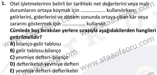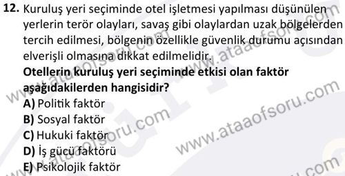 Otel İşletmeciliği Dersi 2024-2025 Güz Dönemi Bütünleme Sınavı Çıkmış Sınav Soruları ve Çözümleri