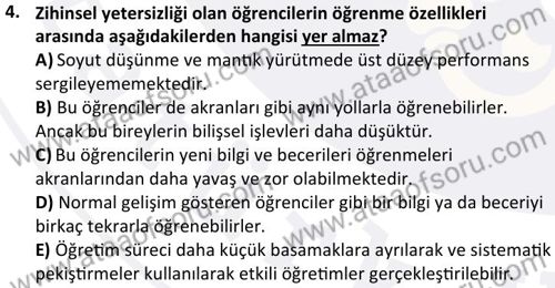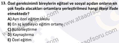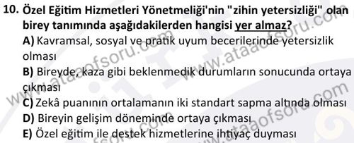 Özel Eğitim 1 Dersi 2025-2026 Güz Dönemi Ara Sınavı Çıkmış Sınav Soruları ve Çözümleri