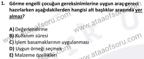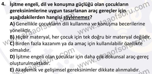 Özel Eğitimde Araç Gereç Geliştirme Dersi 2024-2025 Bahar Dönemi Final Sınavı Çıkmış Sınav Soruları ve Çözümleri