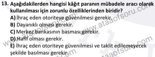 Para ve Bankacılık Dersi 2024-2025 Bahar Dönemi Bütünleme Sınavı Çıkmış Sınav Soruları ve Çözümleri