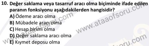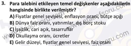 Para ve Bankacılık Dersi 2024-2025 Bahar Dönemi Final Sınavı Çıkmış Sınav Soruları ve Çözümleri