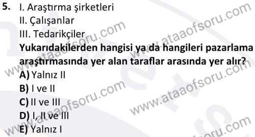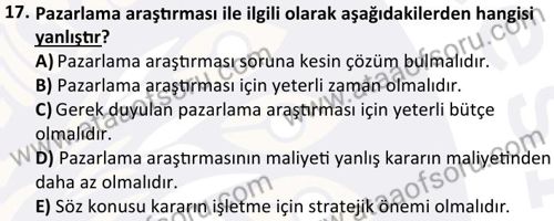 Pazarlama Araştırması Dersi 2025-2026 Güz Dönemi Ara Sınavı Çıkmış Sınav Soruları ve Çözümleri