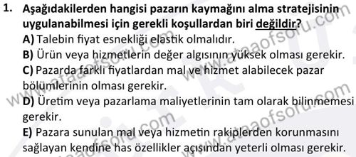 Pazarlama Yönetimi Dersi 2024-2025 Bahar Dönemi Final Sınavı Çıkmış Sınav Soruları ve Çözümleri