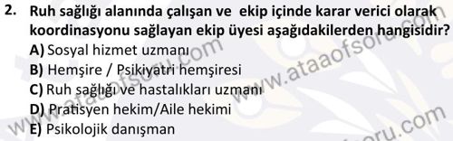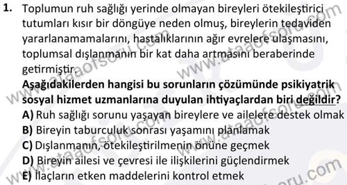 Psikiyatrik Sosyal Hizmet Dersi 2024-2025 Bahar Dönemi Bütünleme Sınavı Çıkmış Sınav Soruları ve Çözümleri