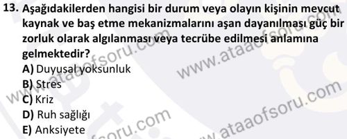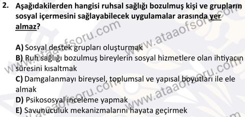 Psikiyatrik Sosyal Hizmet Dersi Final Deneme Sınavı (27 Nisan)