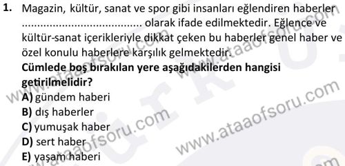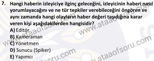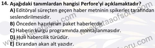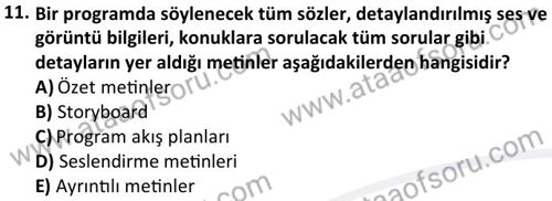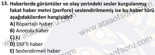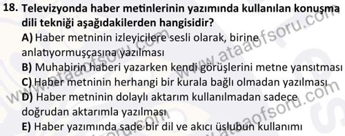 Radyo- Televizyon Metin Yazarlığı ve Habercilik Dersi 2024-2025 Güz Dönemi Bütünleme Sınavı Çıkmış Sınav Soruları ve Çözümleri