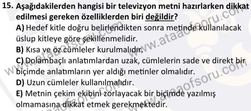 Radyo- Televizyon Metin Yazarlığı ve Habercilik Dersi 2025-2026 Güz Dönemi Ara Sınavı Çıkmış Sınav Soruları ve Çözümleri