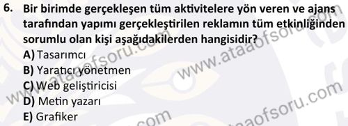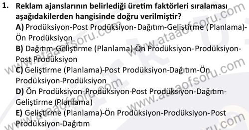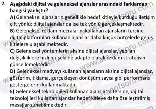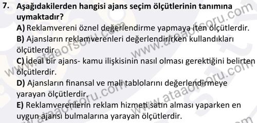 Reklam Ajansı Yönetimi Dersi 2025-2026 Güz Dönemi Final Sınavı Çıkmış Sınav Soruları ve Çözümleri