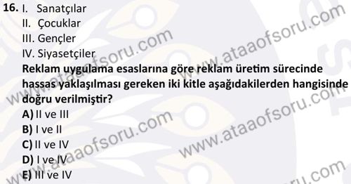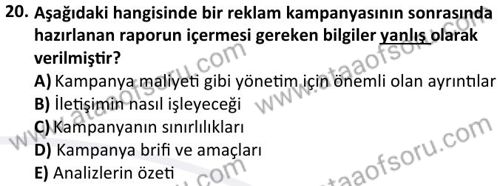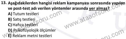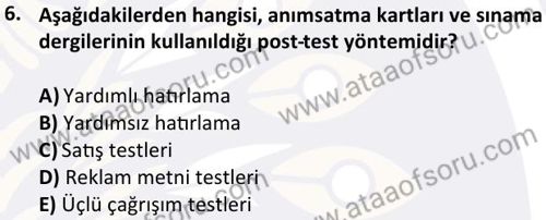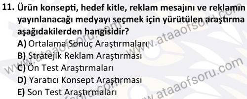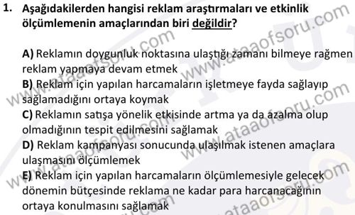 Reklam Araştırmaları ve Etkinlik Ölçümü Dersi 2024-2025 Bahar Dönemi Final Sınavı Çıkmış Sınav Soruları ve Çözümleri