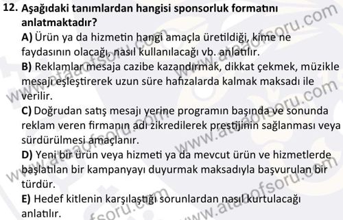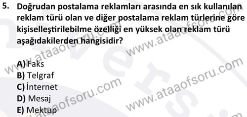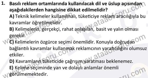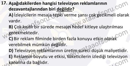 Reklam ve Reklam Yazarlığı Dersi 2024-2025 Güz Dönemi Bütünleme Sınavı Çıkmış Sınav Soruları ve Çözümleri