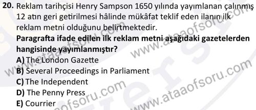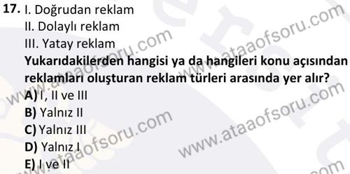 Reklam ve Reklam Yazarlığı Dersi 2025-2026 Güz Dönemi Ara Sınavı Çıkmış Sınav Soruları ve Çözümleri