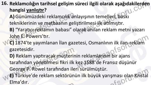 Reklamcılığa Giriş Dersi 2024-2025 Güz Dönemi Bütünleme Sınavı Çıkmış Sınav Soruları ve Çözümleri