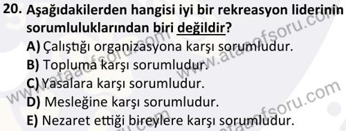 Rekreasyon Liderliği Dersi 2025-2026 Güz Dönemi Ara Sınavı Çıkmış Sınav Soruları ve Çözümleri