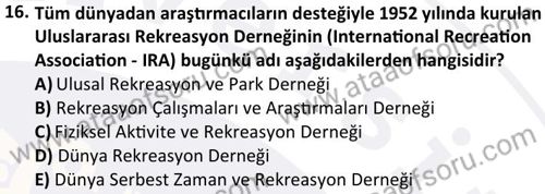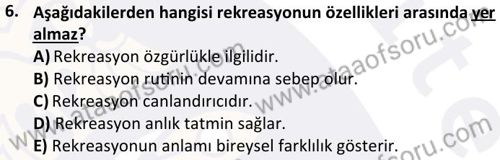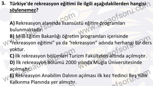 Rekreasyona Giriş Dersi 2024-2025 Güz Dönemi Bütünleme Sınavı Çıkmış Sınav Soruları ve Çözümleri