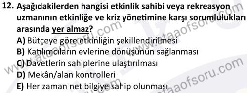 Rekreasyonda Kriz Yönetimi Dersi 2024-2025 Güz Dönemi Bütünleme Sınavı Çıkmış Sınav Soruları ve Çözümleri